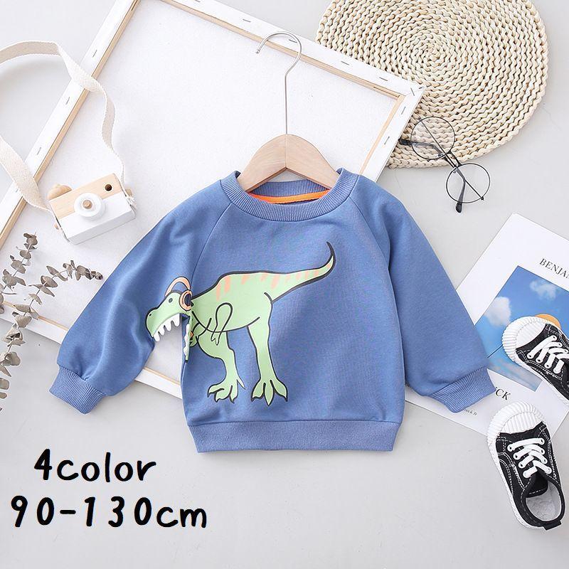 トレーナー 子供服 子ども用 キッズ ベビー 男の子 女の子 トップス 長袖 ラウンドネック プリント柄 恐竜 イラスト ダイナソー かっこいい おし プラスナオ Paypayモール店 通販 Paypayモール